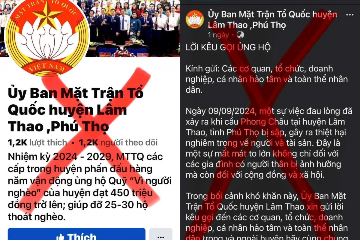Tình trạng này không chỉ dừng lại ở tỉnh Quảng Ninh. Tại huyện Lâm Thao, tỉnh Phú Thọ, một Fanpage trên Facebook đã giả mạo Ủy ban Mặt trận Tổ quốc Việt Nam của huyện này, kêu gọi người dân đóng góp hỗ trợ gia đình các nạn nhân trong vụ sập cầu Phong Châu. Đây là một sự vụ hết sức nghiêm trọng, bởi nó không chỉ làm xói mòn lòng tin của người dân mà còn ảnh hưởng trực tiếp đến các gia đình đang gặp nạn.