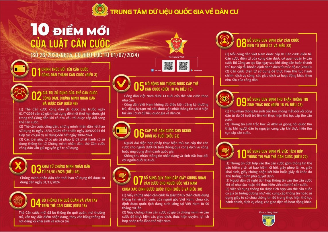 Từ ngày 1/7/2024 tới, Luật Căn cước sẽ có hiệu lực, Cục Cảnh sát Quản lý hành chính về trật tự xã hội, Bộ Công an thông tin tới người dân 10 điểm đáng lưu ý.