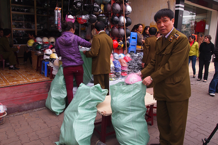 | Ông Trịnh Văn Ngọc - Cục trưởng Cục Quản lý thị trường - trong một đợt ra quân kiểm tra mũ bảo hiểm |