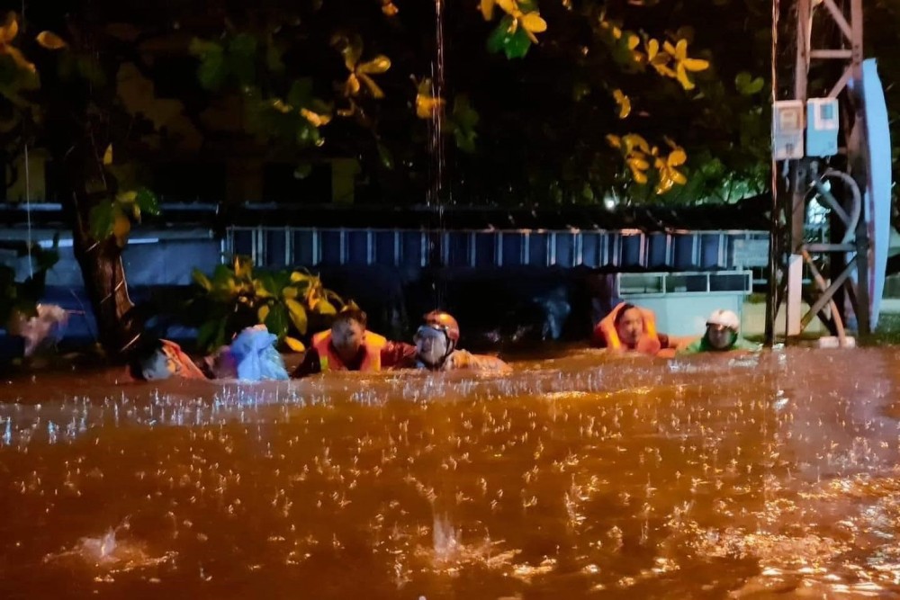 | Trong đêm 14/10, CAP Hoà Khê và Đội Phòng cháy chữa cháy và cứu hộ cứu nạn, Công an quận Thanh Khê và dân quân phường đã giải cứu 4 người dân bị mắc kẹt do nước lên. Ảnh: Công an thành phố Đà Nẵng |