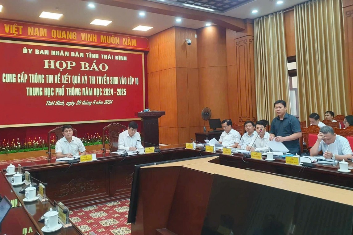 Tại buổi họp báo, UBND tỉnh Thái Bình đã thông tin về cuộc thanh tra việc thực hiện chính sách, pháp luật, nhiệm vụ, quyền hạn được giao đối với Sở Giáo dục và Đào tạo, Giám đốc Sở Giáo dục và Đào tạo và các tổ chức, cá nhân có liên quan trong việc tổ chức kỳ thi tuyển sinh vào lớp 10 THPT năm học 2024-2025 tại tỉnh Thái Bình.