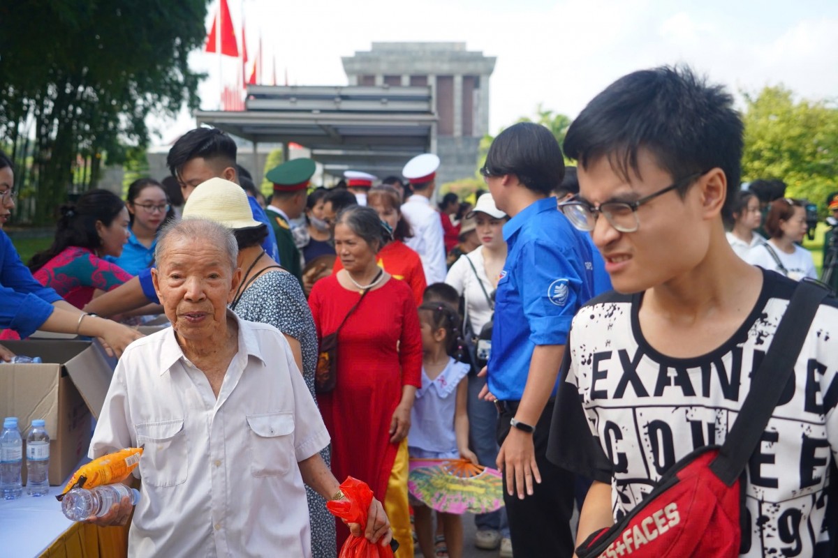 Trong ngày 2/9, Sở Du lịch Hà Nội phối hợp với Ban Quản lý Lăng Chủ tịch Hồ Chí Minh tổ chức tặng 28.000 phần quà cho du khách đến thăm Lăng Bác.