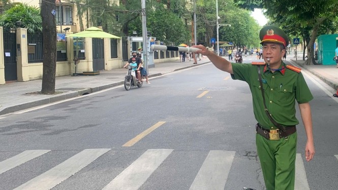 | Công an Phường Điện Biên (Quận Ba Đình) tham gia giữ gìn an ninh, trật tự, đảm bảo giao thông thông suốt (Ảnh: Minh Hoa) |