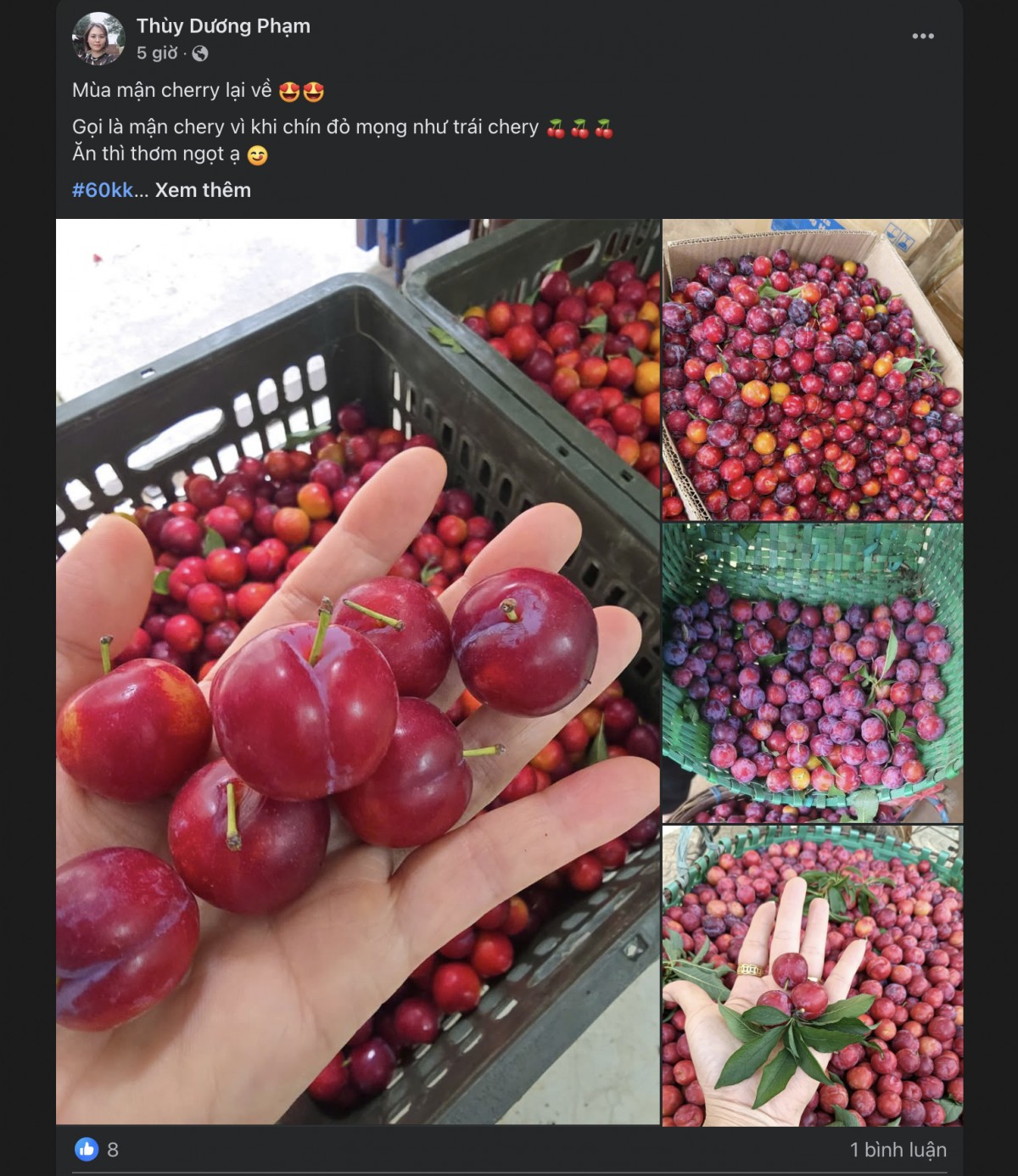 Cùng với sức nóng tại các chợ truyền thống, “mận cherry Sơn La” cũng tạo nên một làn sóng tiêu dùng đáng chú ý trên các nền tảng thương mại điện tử, mạng xã hội và sàn thương mại số nông sản. Trên các hội nhóm chợ online, không khó để tìm thấy hàng nghìn bài đăng quảng cáo mận cherry, kèm hình ảnh mận đỏ au, bóng đẹp, giá siêu cạnh tranh.