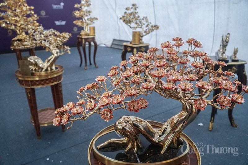 Đặc biệt, khu vực Hội chợ Xuân (quảng trường Sân vận động Quốc gia Mỹ Đình, Hà Nội) có các sản phẩm được dát vàng 24k được trưng bày rất phong phú. Trong đó, có siêu phẩm cây đào, cây mai dát vàng 24k được chào bán với giá tiền tỷ đang nhận được sự quan tâm lớn của người chơi hoa ngày Tết.