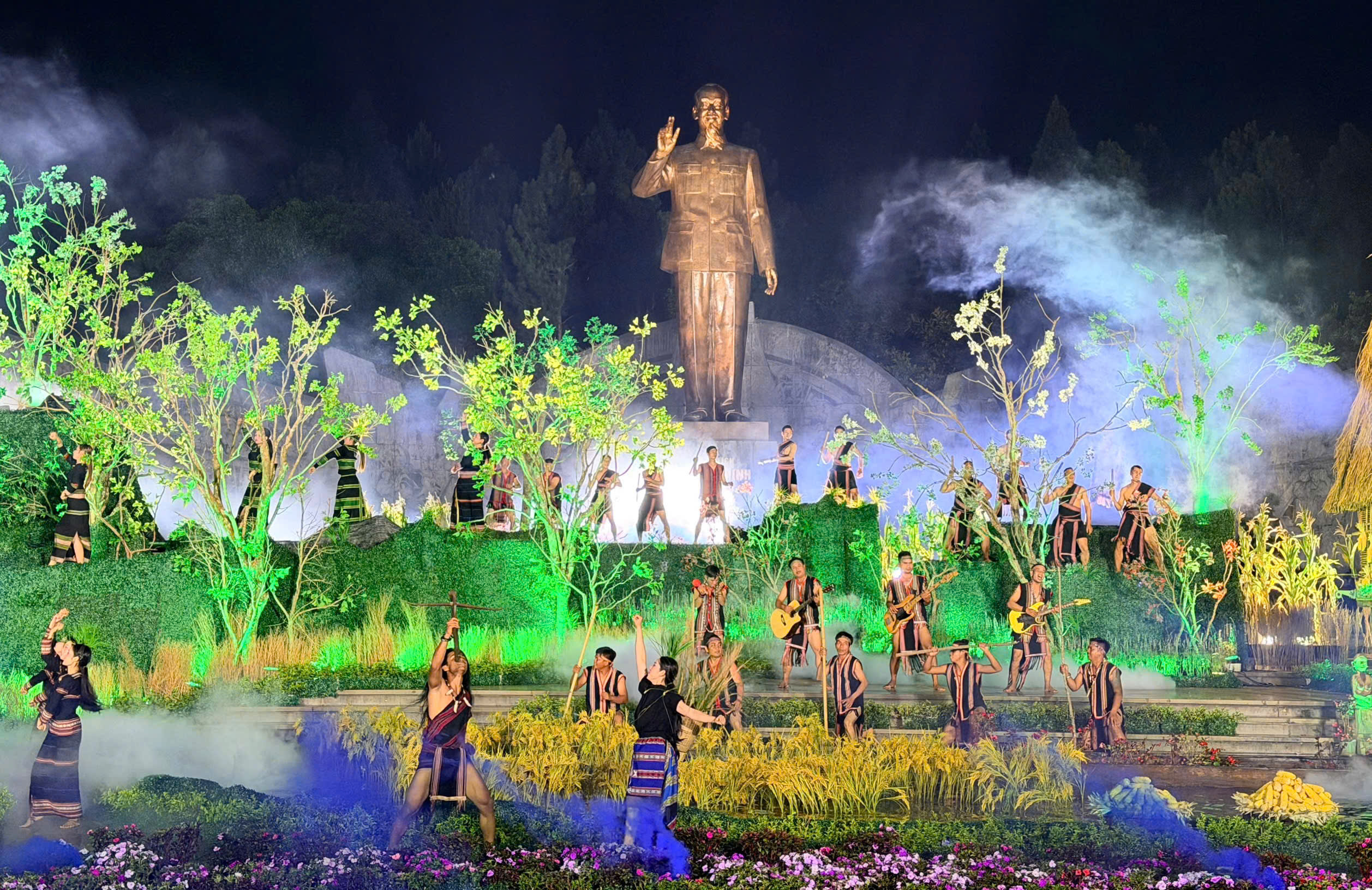 Trong không khí phấn khởi, rộn ràng, tối 25/4, tại Quảng trường Đại Đoàn Kết, nơi đặt tượng đài Bác Hồ với các dân tộc Tây Nguyên, tỉnh Gia Lai long trọng tổ chức Chương trình nghệ thuật và Đêm hội giao lưu văn hóa các dân tộc với chủ đề “Đại ngàn reo”.