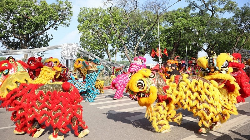 | Tiết mục của đoàn Lân sư rồng huyện Thanh Oai khai màn Carnaval Thu Hà Nội |