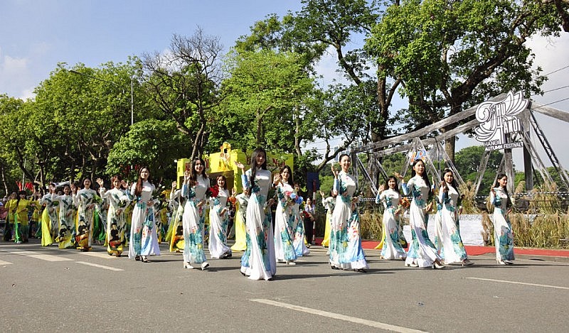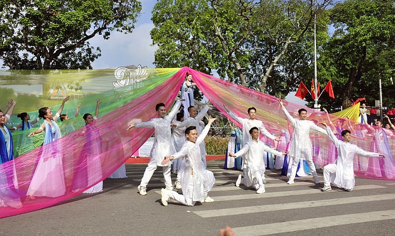 Đoàn diễu hành của Câu lạc bộ Văn hóa Áo dài với vẻ đẹp thướt tha của những tà áo dân tộc; đoàn diễu hành của doanh nghiệp du lịch Hà Nội kết hợp nhảy Flashmob.