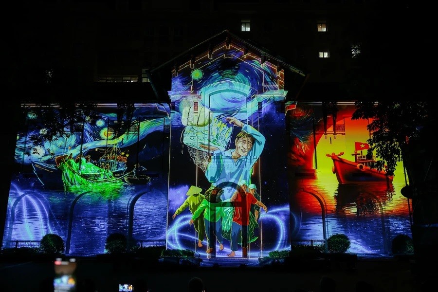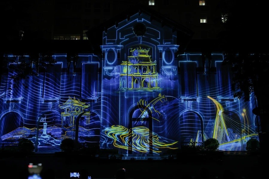Tối 26/8, nhân kỷ niệm 79 năm ngày truyền thống ngành Thông tin và Truyền thông, Bộ Thông tin và Truyền thông đã tổ chức chương trình nghệ thuật đặc biệt trình chiếu 3D Mapping sống động tại tòa nhà Trụ sở Bộ Thông tin và Truyền thông, số 18 Nguyễn Du, Hà Nội.