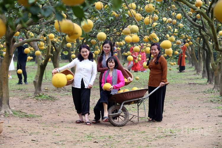 Anh Nguyễn Gia Dũng (chủ vườn bưởi Dũng Thu), phường Phúc Diễn, quận Bắc Từ Liêm chia sẻ, vườn của gia đình anh trồng 2.000 gốc bưởi nhưng chưa năm nào phải mang đi bán vì hái đến đâu thương lái đến mua hết đến đấy. Ngoài tiền bán quả thì cứ đến vụ, gia đình anh Dũng lại có thêm thu nhập từ việc bán vé cho người vào tham quan, trải nghiệm và chụp ảnh với giá 50.000 đồng/người.
