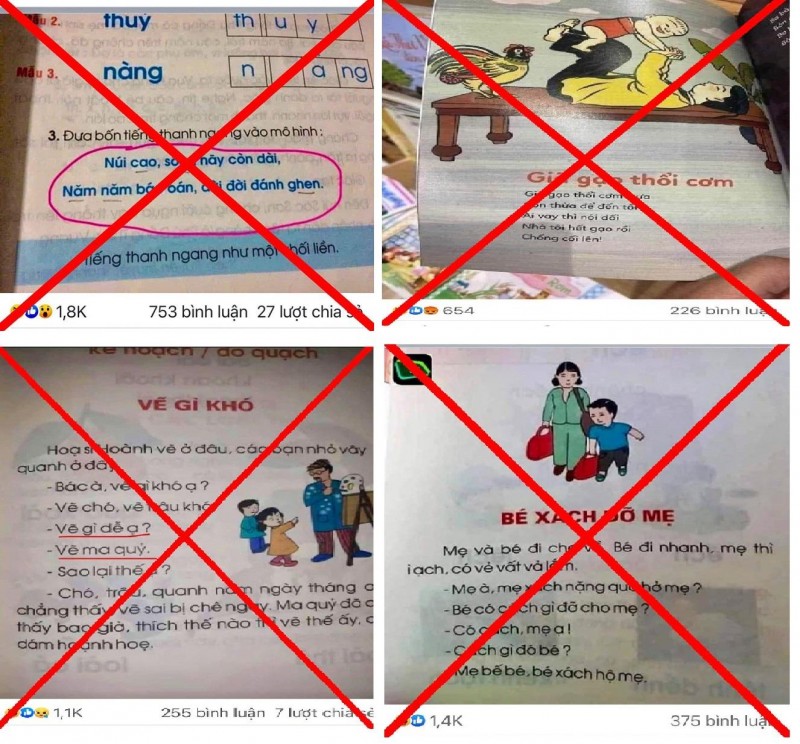 Bộ Giáo dục và Đào tạo vừa phát thông tin cảnh báo cho biết, hiện trên mạng xã hội lan truyền nhiều thông tin về một số nội dung được cho là ngữ liệu trong sách giáo khoa như: Giã gạo thổi cơm, Bắn Tung Tóe, Bạn An dũng cảm, Bé xách đỡ mẹ, Vẽ gì khó....