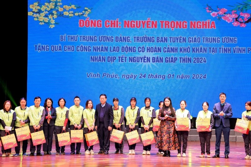 Nhân dịp này, Trưởng ban Tuyên giáo Trung ương đã trao tặng quà Tết và hỗ trợ sinh kế cho 10 hộ có hoàn cảnh khó khăn; tặng 415 suất quà cho Mẹ Việt Nam Anh hùng, người nghèo, công nhân có hoàn cảnh khó khăn trên địa bàn tỉnh Vĩnh Phúc.