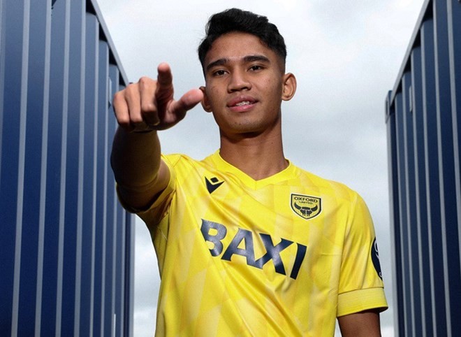 Marcelino Ferdinan trong màu áo CLB Oxford United, đội bóng đang thi đấu tại giải Hạng Nhất Anh. Ảnh: PSSI
