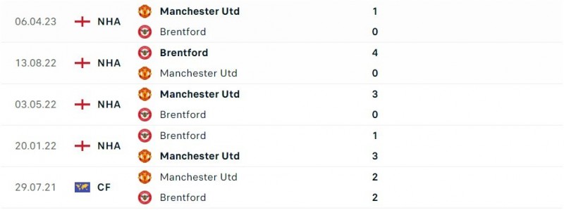 Thành tích đối đầu Man United và Brentford