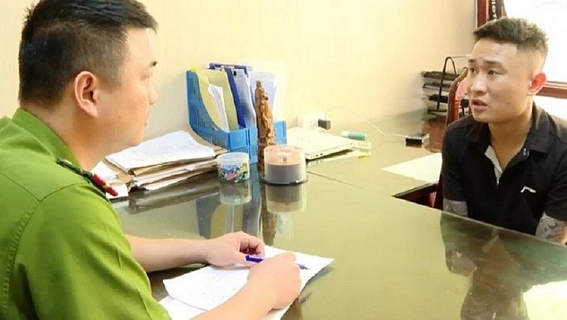 | Công an lấy lời khai của một nghi phạm. Ảnh Công an Ninh Bình |