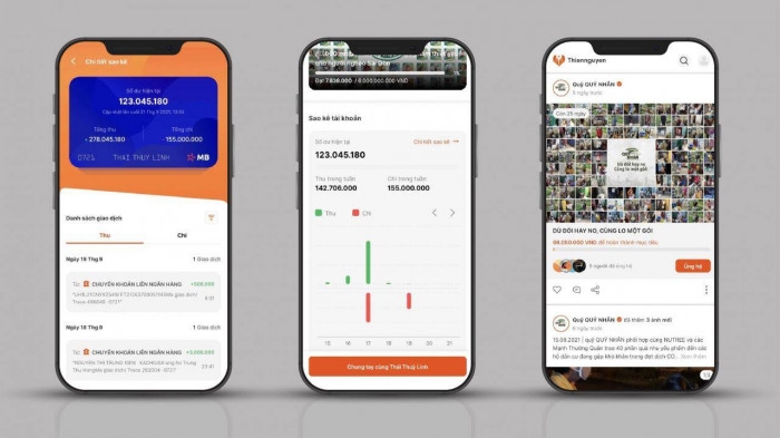 | Sao kê minh bạch và nhanh chóng theo thời gian thực tế trên App Thiện nguyện |
