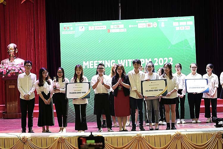 Vòng chung kết Meeting With PM 2022 với sự tranh tài của 6 đội thi xuất sắc đã diễn ra hấp dẫn, để lại nhiều ấn tượng. Ban tổ chức đã lựa chọn 1 giải nhất, 1 giải nhì, 2 giải ba và 2 giải khuyến khích, tổng giải thưởng trị giá của cuộc thi lên đến 200 triệu đồng.