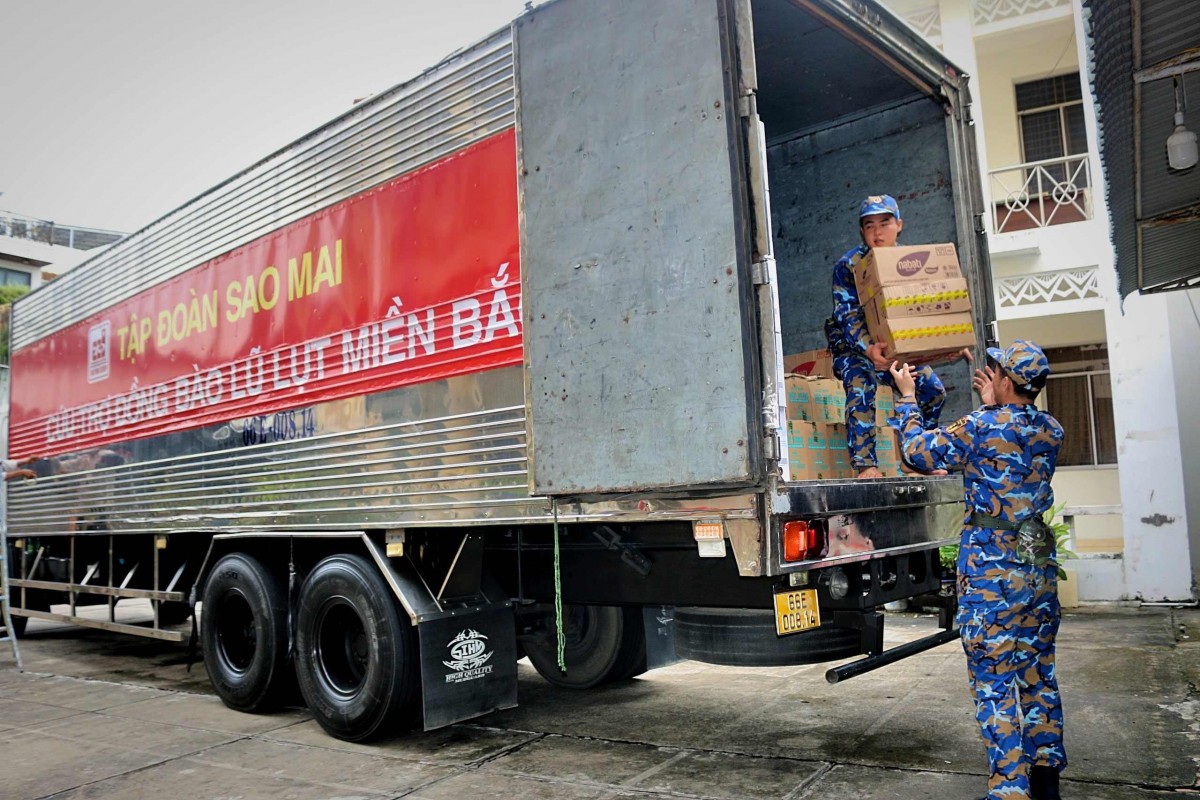 | Thực hiện lời kêu gọi của Đảng, Nhà nước, Chính phủ và UBMTTQVN tỉnh An Giang, Tập đoàn Sao Mai đã khẩn trương đóng góp vào chương trình cứu trợ cho đồng bào miền Bắc. |