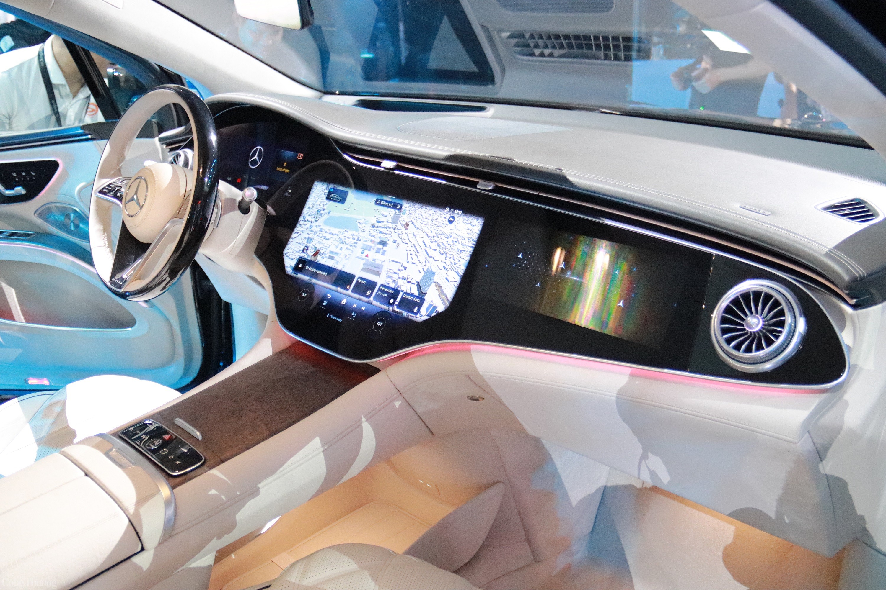 | EQS 680 SUV được trang bị màn hình giải trí MBUX Hyperscreen với bảng đồng hồ kỹ thuật số 12,3-inch sau vô lăng, màn hình giải trí trung tâm OLED 17,7-inch (điều khiển cảm ứng) & màn hình hiển thị thông tin phía trước ghế phụ OLED 12,3-inch (điều khiển cảm ứng). Ảnh: Thanh Tuấn |