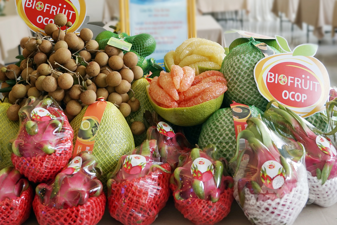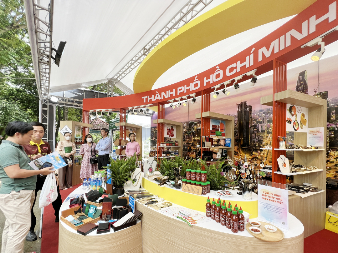 | Doanh nghiệp, HTX tỉnh Long An tham gia trưng bày, giới thiệu sản phẩm nông sản đặc trưng tại buổi kết nối giao thương giữa các nhà cung cấp và doanh nghiệp xuất khẩu tại TP.HCM. Ảnh: Nguyễn Thủy. |