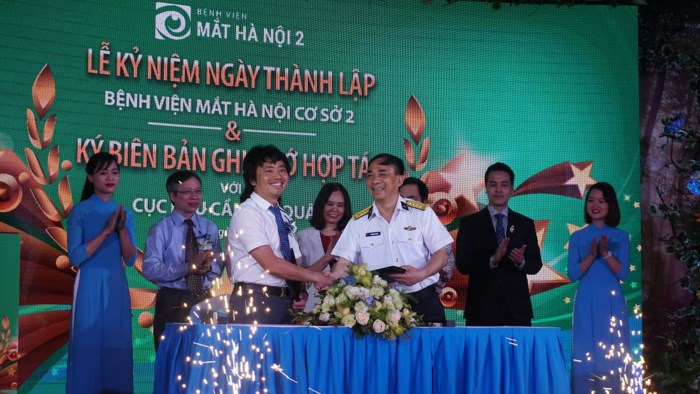 Nhân dịp kỷ niệm 1 năm ngày thành lập, Bệnh viện Mắt Hà Nội 2 rất hân hạnh và tự hào được được Cục hậu Cần – Quân chủng Hải Quân Việt Nam tin cậy lựa chọn là đối tác hợp tác trong khuôn khổ khám chữa điều trị tật khúc xạ cho chiến sỹ Quân chủng Hải Quân, tư vấn cho các chiến sỹ các phương pháp phòng ngừa tật khúc xạ, nghiên cứu phương pháp điều trị tật khúc xạ cho một số lực lượng đặc thù của Hải Quân, đào tạo chuyên môn chuyên khoa mắt cho các bác sỹ và điều dưỡng của Viện Y học Hải Quân.