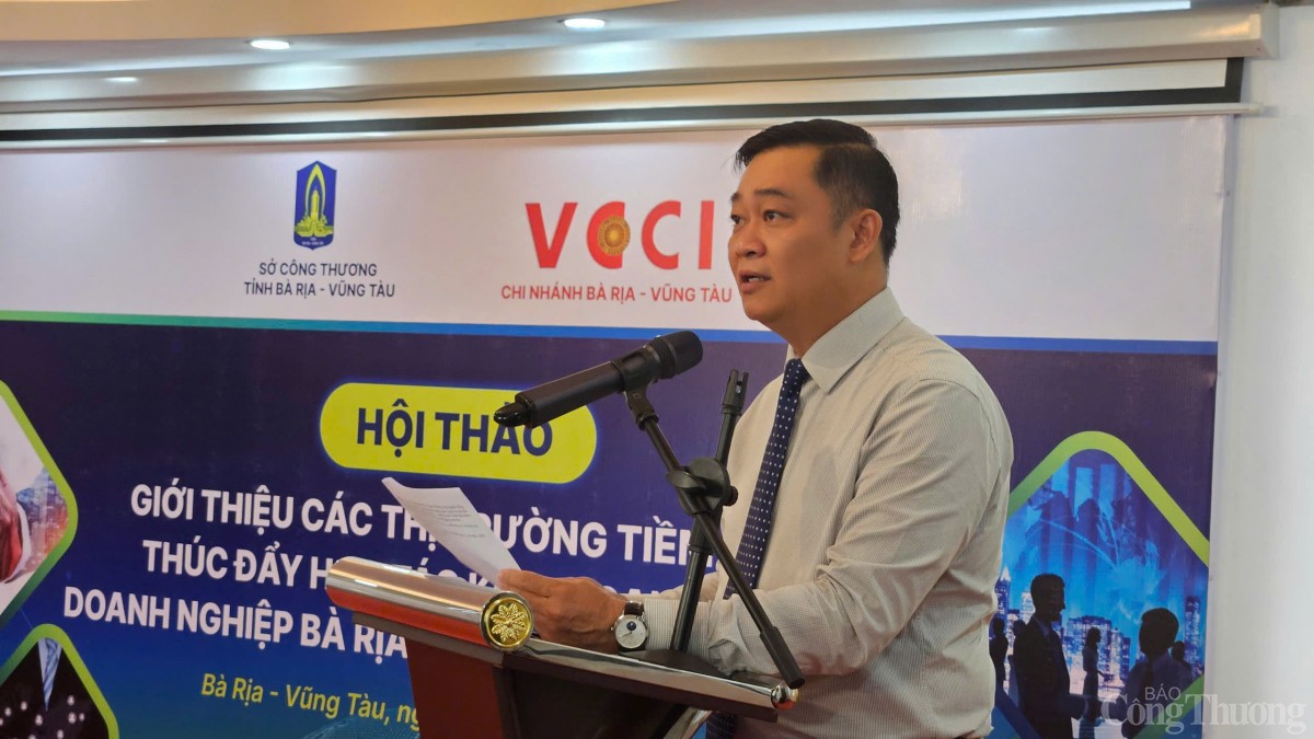 Chiều 6/6, tại TP. Vũng Tàu, Sở Công Thương tỉnh Bà Rịa - Vũng Tàu tổ chức Hội thảo giới thiệu các thị trường tiềm năng thúc đẩy hợp tác kinh doanh giữa doanh nghiệp Bà Rịa - Vũng Tàu và các nước. Cục trưởng Cục Xúc tiến thương mại (Bộ Công Thương) Vũ Bá Phú dự và chia sẻ tại hội nghị.