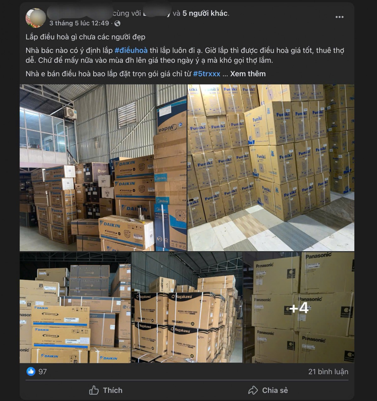 | Mặt hàng máy lạnh còn được rao bán trên các nền tảng mạng xã hội với giá ưu đãi. Ảnh chụp màn hình |