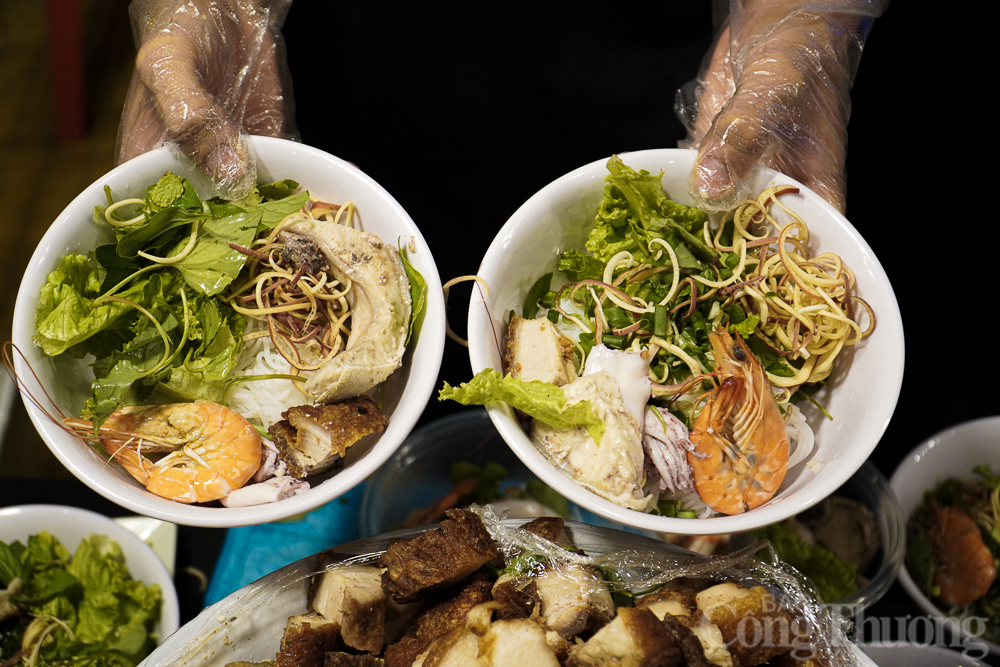 | Tô bún mắm miền Tây đầy đủ cả tôm, thịt heo quay,... níu chân du khách tại Lễ hội. |