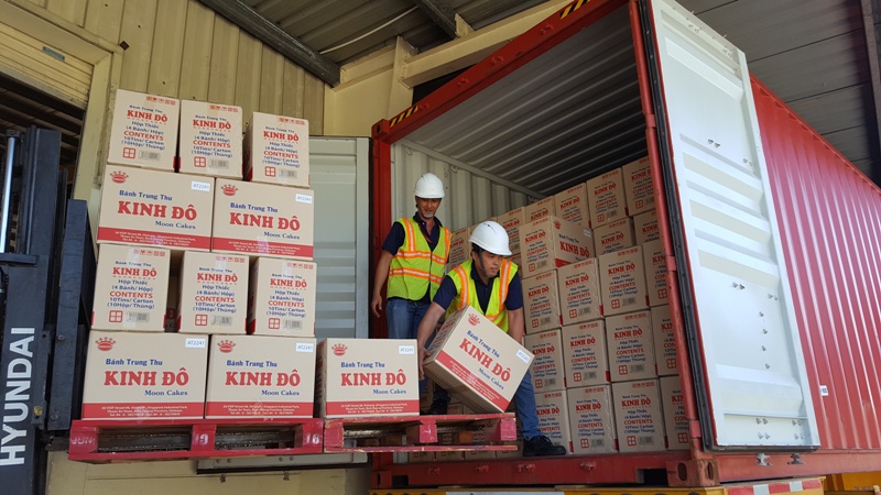 | Những thùng bánh trung thu Việt Nam xuất sang Mỹ |