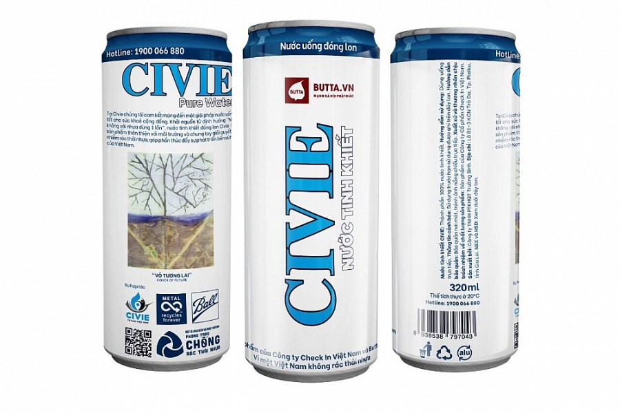 Với mong muốn lan toả tình yêu thiên nhiên, bảo vệ môi trường, với tư cách là người Sáng lập Mạng xã hội Butta – mạng xã hội Phật giáo Việt Nam, hoạ sỹ Kim Đức đã cùng các cộng sự tái hiện bức tranh “Vỏ Tương Lai” trên vỏ lon nước tinh khiết Civie và logo Butta. Nói về ý tưởng kết hợp này, chị chia sẻ: “ Tôi mong muốn thông điệp bảo vệ môi trường cũng như những ý nghĩa xã hội của việc hạn chế sử dụng sản phẩm nhựa một lần được lan toả. Qua lon nước nhỏ bé, mọi người sẽ biết Butta nhiều hơn đồng thời thức tỉnh để bảo vệ chính cuộc sống của mỗi người”. Được biết, Mạng xã hội Phật giáo Việt Nam đã cam kết hỗ trợ Civie trong việc quảng bá và ưu tiên đưa sản phẩm nước uống đóng lon Civie thân thiện với môi trường đến với các tăng ni, phật tử và các chùa cũng như các cơ sở thờ tự khác trong hệ thống Giáo hội Phật giáo Việt Nam.
