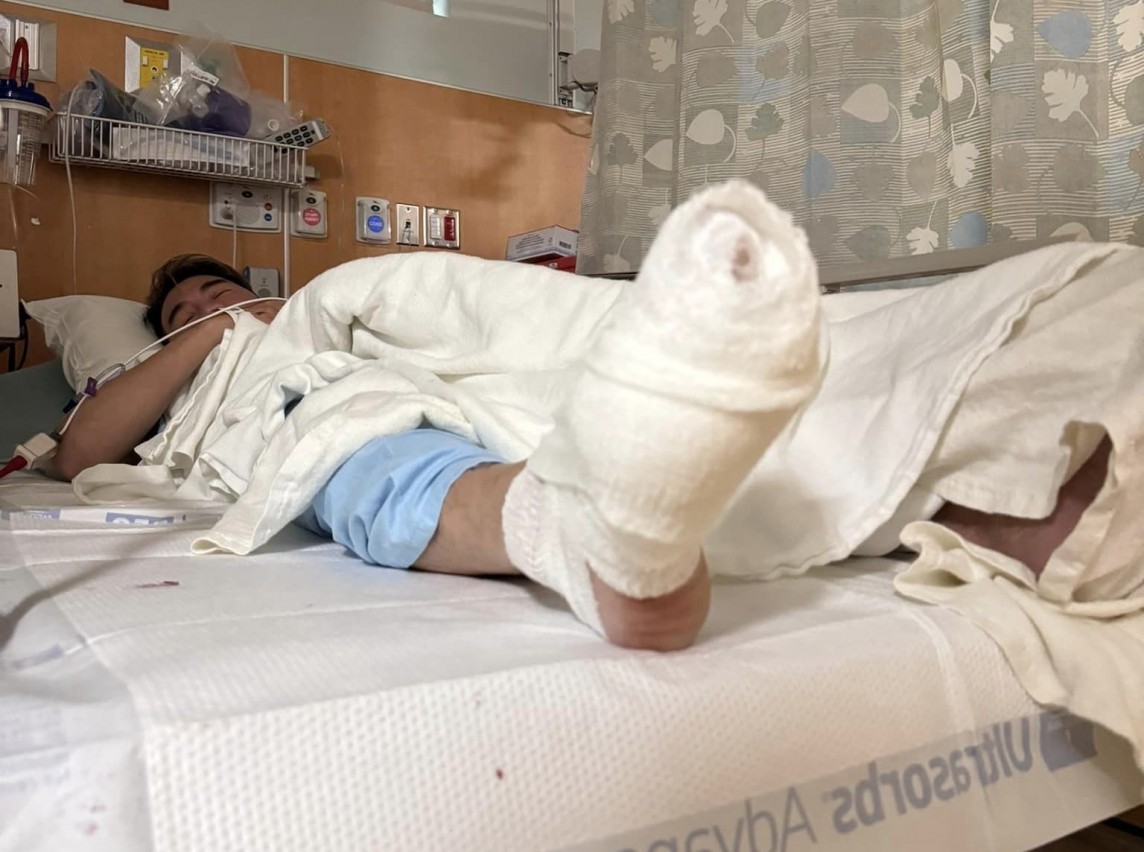 | Hình ảnh Mr Đàm bị chấn thương ở chân được chia sẻ trên mạng xã hội |