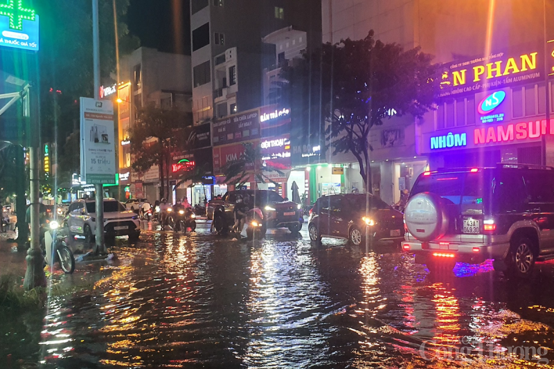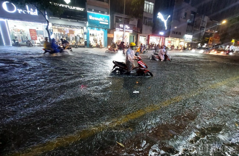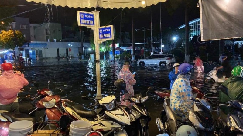 Nhiều tuyến đường trung tâm thành phố Đà Nẵng đã xảy ra tình trạng ngập cục bộ sau khoảng hơn 30 phút mưa gây khó khăn khi lưu thông.