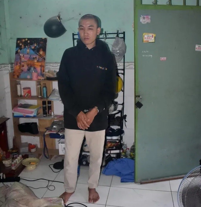 | Võ Đức Anh Hào bị bắt về tội tàng trữ tiền giả - Ảnh: TTXVN phát |