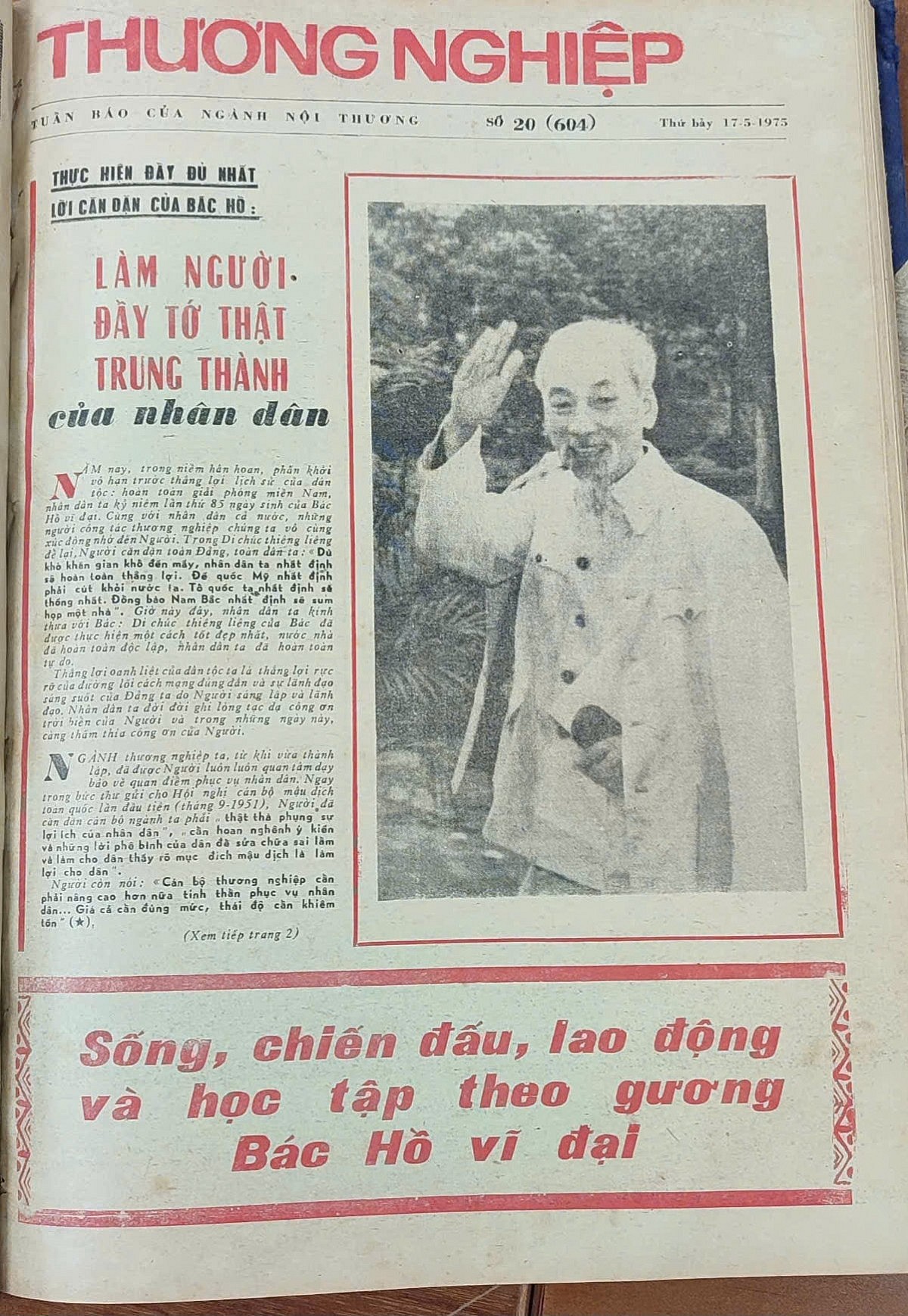 Giữa những ngày tháng 5 lịch sử, nhân ngày sinh nhật của Bác Hồ kính yêu, Tờ Thương nghiệp số 20 (604) ra thứ bảy ngày 17-5-1975, có bài viết: Thực hiện đầy đủ nhất lời căn dặn của Bác Hồ: Làm người đầy tớ thật trung thành của nhân dân. Bài báo sử dụng hình ảnh Bác Hồ cười tươi vẫy chào đồng bào cả nước, cùng những từ ngữ giản dị, dễ hiểu, song đã truyền cảm hứng đến hàng triệu người dân Việt Nam: Năm nay, trong niềm hân hoan, phấn khởi vô hạn trước thắng lợi lịch sử của dân tộc: hoàn toàn giải phóng miền Nam, nhân dân kỷ niệm lần thứ 85 ngày sinh của Bác Hồ vĩ đại. Cùng với nhân dân cả nước, những người công tác thương nghiệp chúng ta vô cùng xúc động nhớ đến Người. Trong Di chúc thiêng liêng để lại, Người căn dặn toàn Đảng, toàn dân ta: “Dù khó khăn gian khổ đến mấy, nhân dân ta nhất định sẽ hoàn toàn thắng lợi. Đế quốc Mỹ nhất định phải cút khỏi nước ta. Đế quốc Mỹ nhất định phải cút khỏi nước ta. Tổ quốc ta nhất định sẽ thống nhất. Đồng bào Nam Bắc nhất định sẽ sum họp một nhà”. Giờ này đây, nhân dân ta kính thưa với Bác: Di chúc thiêng liêng của Bác đã được thực hiện một cách tốt đẹp nhất, nước nhà đã hoàn toàn độc lập, nhân dân ta đã hoàn toàn tự do. … Ngành Thương nghiệp ta từ khi vừa thành lập đã được Người luôn luôn quan tâm dạy bảo về quan điểm phục vụ nhân dân. Ngay trong bức thư gửi cho Hội nghị cán bộ mậu dịch toàn quốc lần đầu tiên (tháng 9-1951), Người đã căn dặn toàn bộ ngành ta phải “thật thà phụng sự lợi ích của nhân dân”, “cần hoan nghênh ý kiến và những lời phê bình của dân đã sửa chữa sai lầm và làm cho dân thấy rõ mục đích mậu dịch và làm lợi cho dân”. Người còn nói: “Cán bộ thương nghiệp cần phải nâng cao hơn nữa tinh thần phục vụ nhân dân… Giá cả cần đúng mực, thái độ cần khiêm tốn”… |