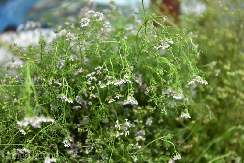 | "Chúng tôi mang vào nội thành để bán cho người dân nấu nước tắm ngày cuối năm theo truyền thống. Trồng cây mùi già này tỉ mỉ mà nhiều công lắm. Nhổ lên rồi phải rửa sạch đất, phấn hoa rồi về bó lại thành từng bó bằng lạt hoặc rơm rồi mới mang đi bán. Nhà tôi trồng 1 sào, dự kiến thu được khoảng 30 triệu đồng", bà Hiểu cho biết |