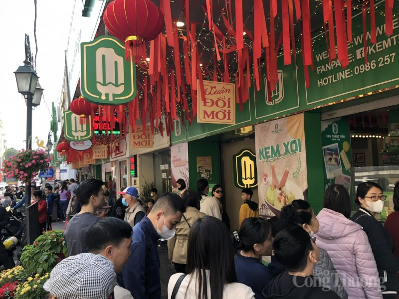 | Sáng mùng 4 Tết, dòng người xếp hàng dài để mua kem Tràng Tiền |