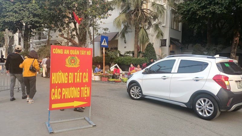 Biển chỉ dẫn, hướng dẫn du khách khi tới Phủ Tây Hồ để bảo đảm an ninh trật tự, giao thông được thông suốt |
