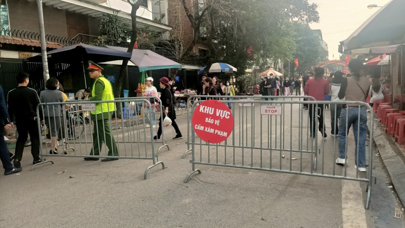 | Cơ quan công an lắp barie để ngăn không cho phương tiện giao thông đi vào khu vực phía trong phủ |