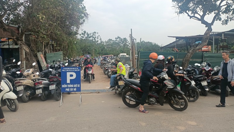 Quanh Phủ Tây Hồ có nhiều bãi trông giữ xe, địa điểm nào cũng kín chỗ |