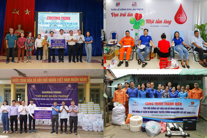 Tiếp tục thực hiện tôn chỉ, mục tiêu “là một doanh nghiệp có trách nhiệm trước cộng đồng xã hội”, năm 2023, toàn EVNGENCO2 thực hiện nhiều hoạt động an sinh xã hội thiết thực, hiệu quả, lan tỏa nét đẹp văn hóa của toàn EVNGENCO2 nói riêng và ngành Điện Việt Nam nói chung. Các hoạt động an sinh xã hội nổi bật như: Hỗ trợ xây nhà ở, nhà tình nghĩa/nhà Đại đoàn kết cho người nghèo, hộ gia đình chính sách; Phụng dưỡng Mẹ Việt Nam Anh hùng; Tặng xe đạp, áo ấm cho trẻ em vùng cao; Tổ chức chương trình “Vui tết trung thu”, “Tiếp bước em đến trường” cho các em học sinh miền núi; Cải tạo hệ thống điện và thực hiện chương trình “Thắp sáng đường quê” cho các hộ dân có hoàn cảnh khó khăn… với tổng giá trị gần 11 tỷ đồng. Đặc biệt, cán bộ công nhân viên toàn Tổng công ty đã hưởng ứng nhiệt tình chương trình “Tuần lễ hồng EVN” lần thứ IX, đóng góp được 512 đơn vị máu.