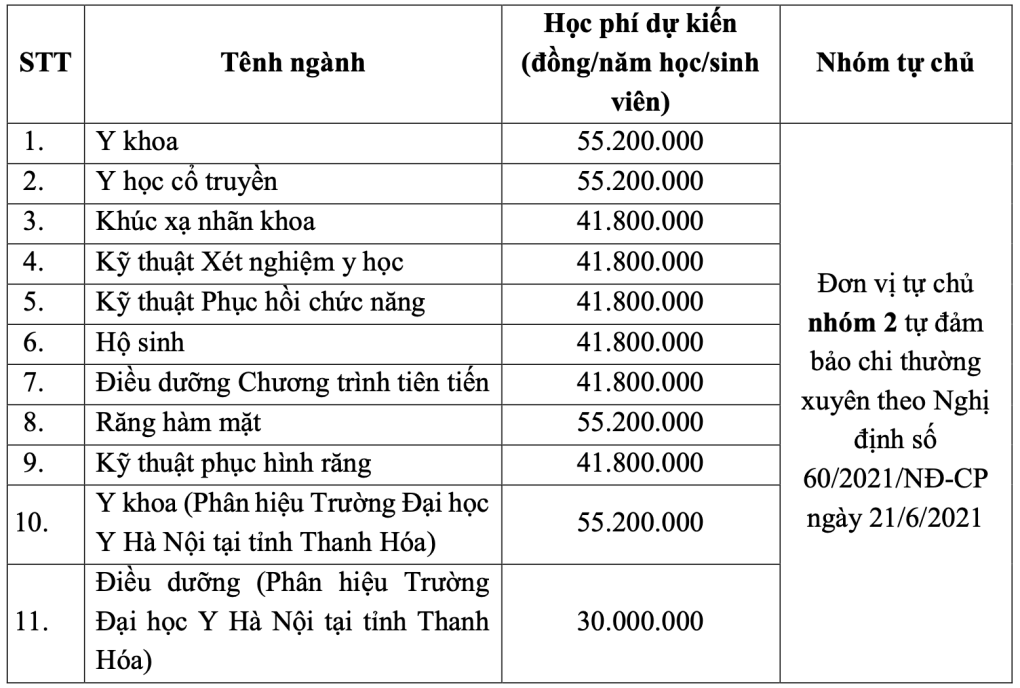 Chỉ tiêu các ngành của Trường Đại học Y Hà Nội cụ thể như sau: