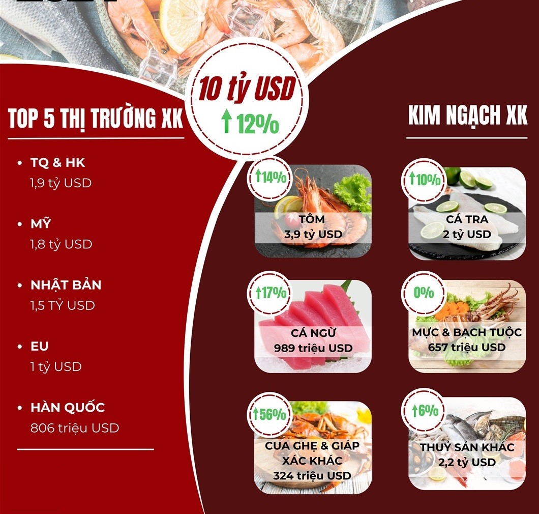 | Xuất khẩu thuỷ sản Việt Nam năm 2024 cán mốc hơn 10 tỷ USD, mục tiêu tăng trưởng hơn nữa trong 2025 - (Ảnh: VASEP). |