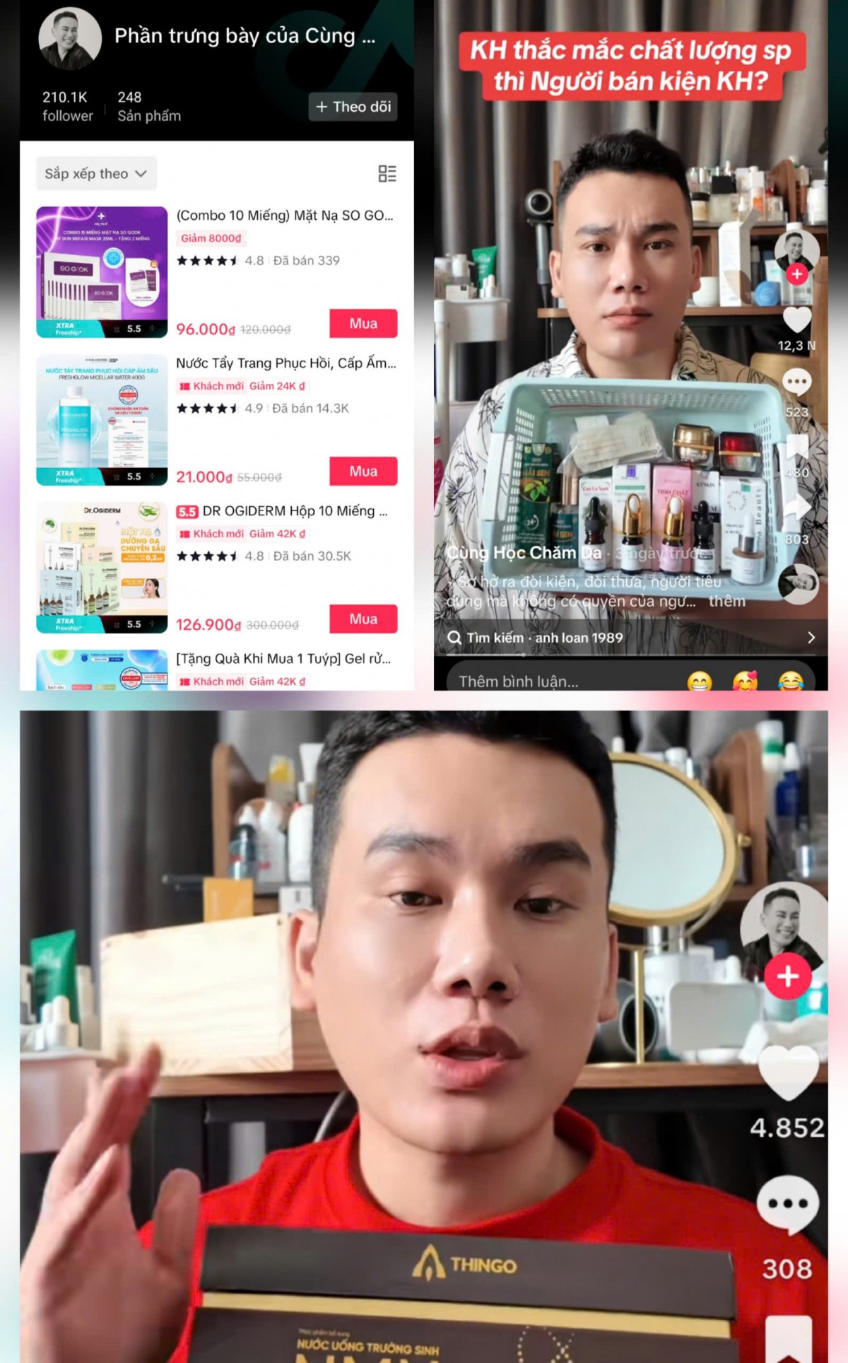 Ghi nhận của phóng viên Báo Công Thương, tại phần trưng bày trên TikTok, ông Mai Văn Đông đang làm tiếp thị liên kết/kinh doanh 248 sản phẩm là mỹ phẩm. Tuy nhiên, quá trình sáng tạo nội dung, ông này đã khoác trên mình chiếc áo người tiêu dùng để công kích nhiều nhãn hàng khác.