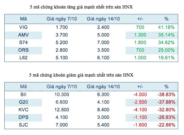 Bên sàn HNX, mã VIG của Công ty cổ phần Chứng khoán thương mại và Công nghiệp Việt Nam là quán quân nhóm tăng giá.