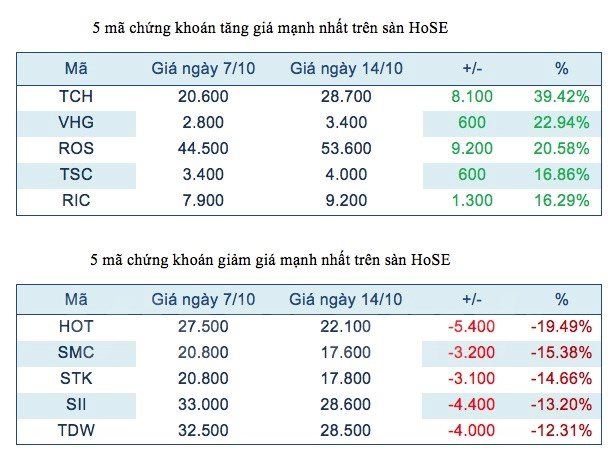 Thống kê chi tiết của Công ty cổ phần Chứng khoán Sài Gòn-Hà Nội (SHS) cho thấy, trên sàn HoSE, mã TCH của Công ty cổ phần Đầu tư dịch vụ tài chính Hoàng Huy đã tăng giá hơn 39% trong tuần qua.