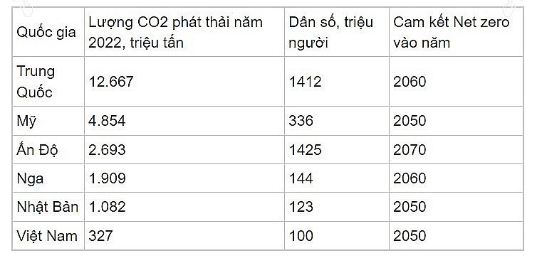 Năm nước phát thải hàng đầu và Việt Nam trên hành trình tới Net zero