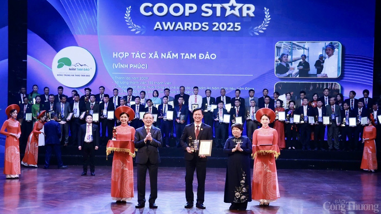 | Sự kiện Tôn vinh hợp tác xã tiêu biểu, trao giải thưởng Ngôi sao hợp tác xã-CoopStar Awards 2025 và các hoạt động Hưởng ứng Tháng hành động vì Hợp tác xã, năm Quốc tế Hợp tác xã 2025, ông Nguyễn Quốc Huy, Chủ tịch HĐQT kiêm Giám đốc HTX Nấm Tam Đảo đã nhận Giải thưởng Ngôi sao Hợp tác xã và Bằng khen của Liên minh Hợp tác xã Việt Nam. Đây là sự ghi nhận xứng đáng cho một tập thể tiên phong trong phát triển chuỗi giá trị nông nghiệp tuần hoàn và đổi mới sản phẩm OCOP từ những nguyên liệu bản địa, là dấu mốc khẳng định năng lực cạnh tranh và giá trị bền vững cần nhân rộng. |