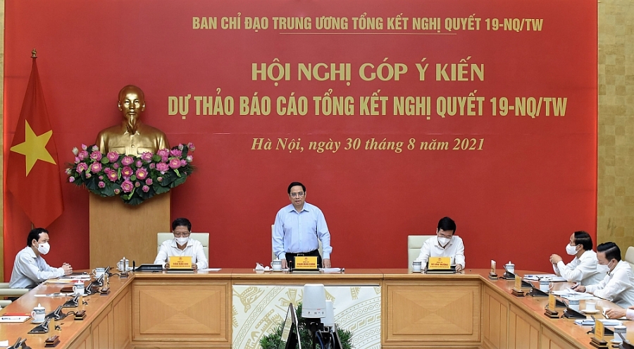 Thủ tướng nêu rõ, thời gian thực hiện tổng kết nghị quyết không dài; đại dịch Covid-19 bùng phát mạnh tại nhiều tỉnh, thành trên cả nước, Ban Chỉ đạo đã chỉ đạo các ban, bộ, ngành Trung ương, địa phương quyết tâm vào cuộc, vừa bảo đảm yêu cầu phòng chống dịch bệnh, vừa hoàn thành nhiệm vụ tổng kết nghị quyết. Thủ tướng yêu cầu các đại biểu tập trung thảo luận về những kết quả đạt được, đi thẳng vào vấn đề còn băn khoăn, còn có ý kiến khác nhau, hạn chế và nguyên nhân của những hạn chế, nhất là nguyên nhân chủ quan; bài học kinh nghiệm được rút ra từ thực tiễn; các quan điểm, tầm nhìn, mục tiêu và nhiệm vụ, giải pháp, nhất là các nhiệm vụ, giải pháp đột pháp nhằm quản lý và sử dụng đất đai tiết kiệm, hiệu quả và bền vững được đề xuất trong dự thảo báo cáo.