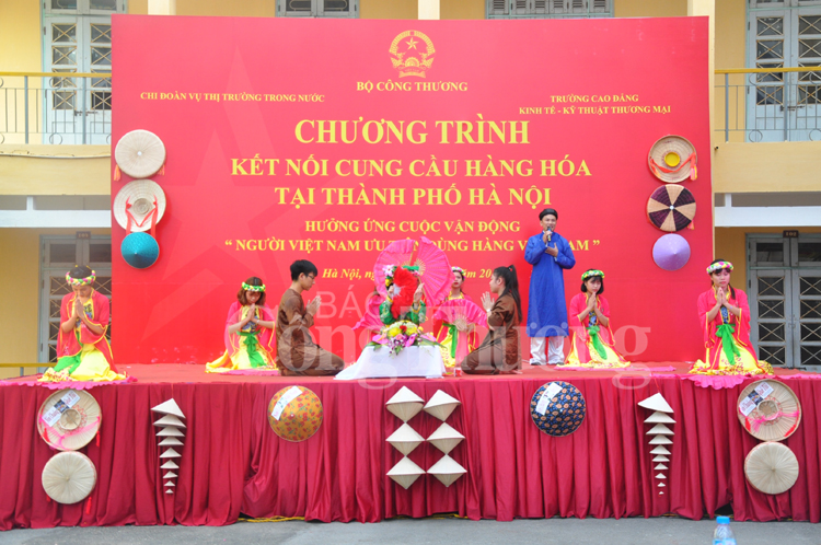 Phát biểu tại chương trình, ông Hoàng Minh Chiến-Bí thư Đoàn thanh niên Bộ Công Thương cho biết, chương trình kết nối cung cầu hàng hóa được tổ chức tại Trường Cao đẳng Kinh tế - Kỹ thuật thương mại - ngôi trường giàu truyền thống, được thành lập hơn 50 năm, đã đào tạo hơn 65.000 cán bộ, nhân viên kỹ thuật, công nhân phục vụ cho ngành công thương và xã hội, trong đó có gần 400 sỹ quan, chiến sỹ của Bộ Quốc phòng, hơn 200 lưu học sinh của các nước bạn Lào, Campuchia và hơn 4.000 cử nhân đào tạo liên kết với các trường đại học. “Với sự tham gia của hơn 600 sinh viên của Trường Cao đẳng - Kinh tế thương mại, Chương trình kết nối cung cầu sẽ là cơ hội cho các DN Việt giới thiệu các sản phẩm của mình đến đội ngũ thanh niên trí thức - những người chủ tương lai của đất nước và thông qua đội ngũ này quảng bá sản phẩm, hàng hóa Việt tới các thị trường trong nước và quốc tế” - ông Hoàng Minh Chiến cho hay.