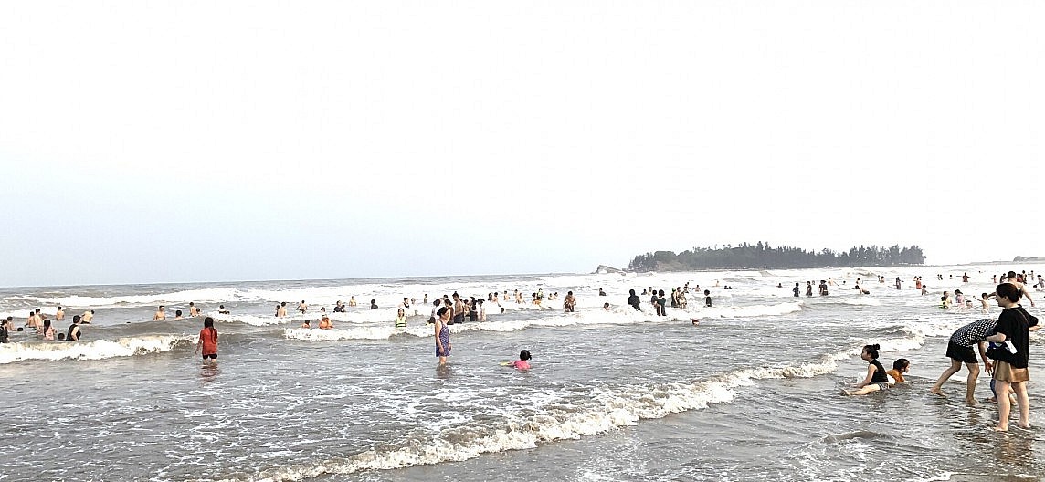 | Biển Cửa Lo đông đúc khách du lịch. Ảnh: Duy Chương |